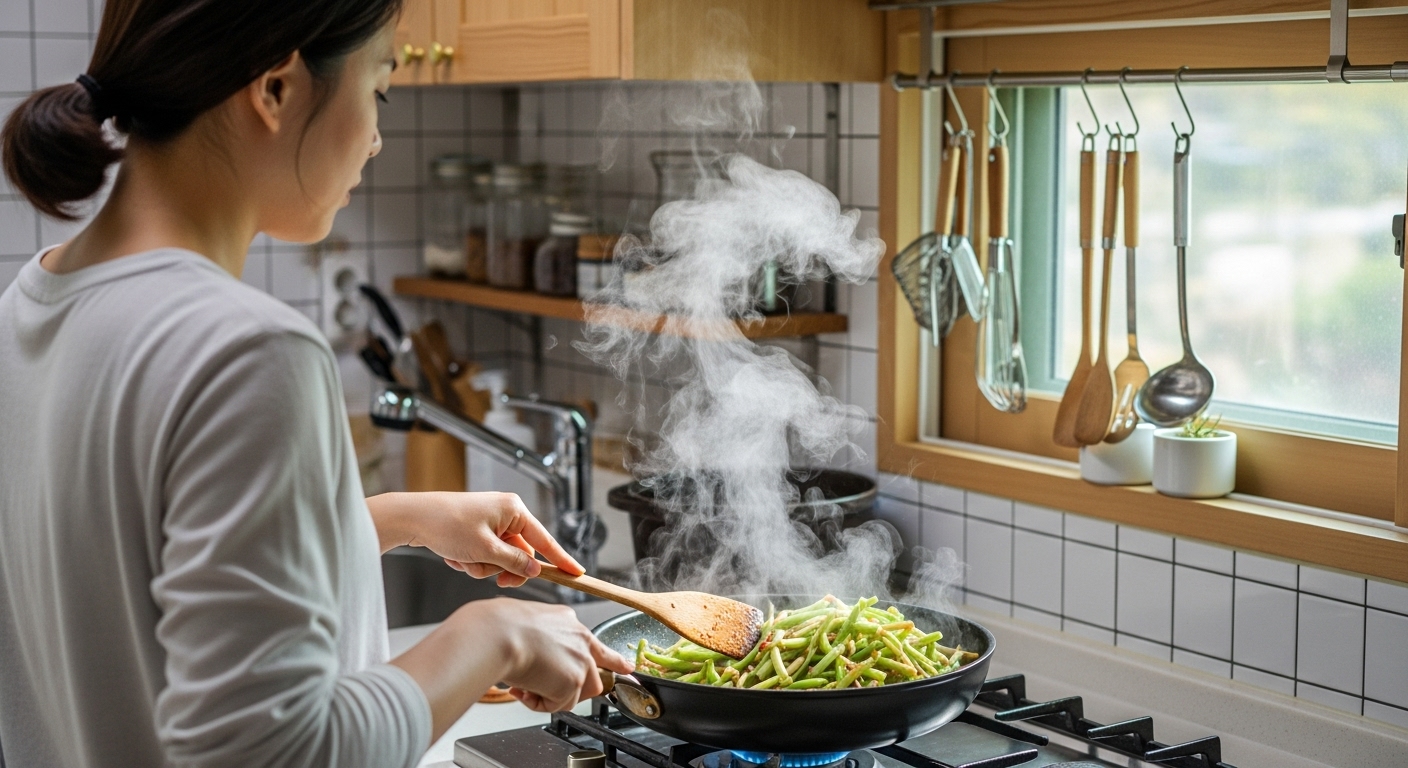 한 번에 많은 양을 만들 때는 볶는 순서와 불 조절이 매우 중요합니다. 또한, 고구마줄기가 질기지 않게 하려면 데치기 → 수분 제거 → 양념 흡수 순서를 꼭 지켜야 합니다.