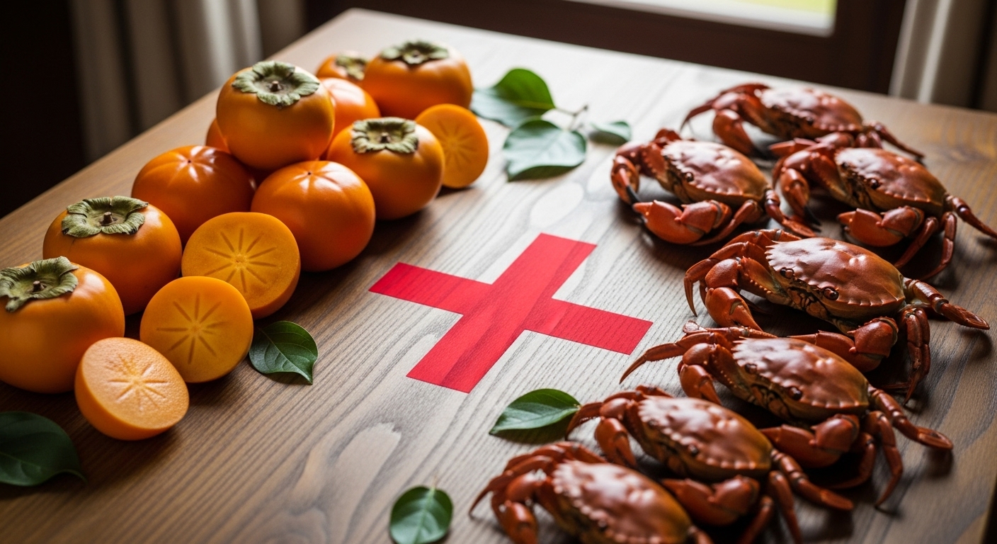 단감과 게를 함께 먹으면 단백질이 탄닌과 결합하여 위 속에서 덩어리를 만들 수 있습니다. 이 덩어리는 복통이나 소화불량을 유발할 수 있습니다.
