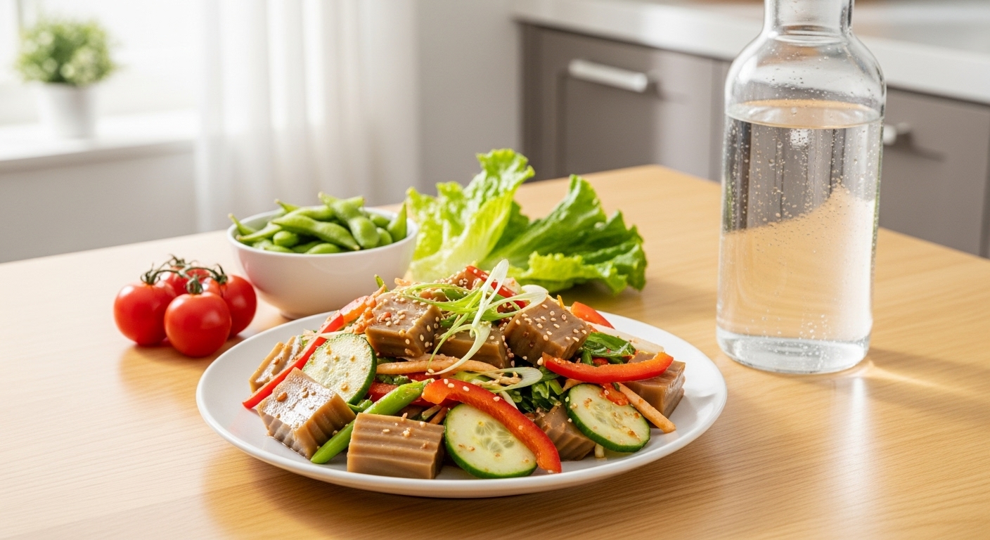 셋째, 도토리묵은 체내 수분을 조절하고 노폐물 배출을 돕는 역할도 합니다. 특히 운동 후 땀을 많이 흘린 뒤 먹으면 미네랄 보충에도 유용합니다.