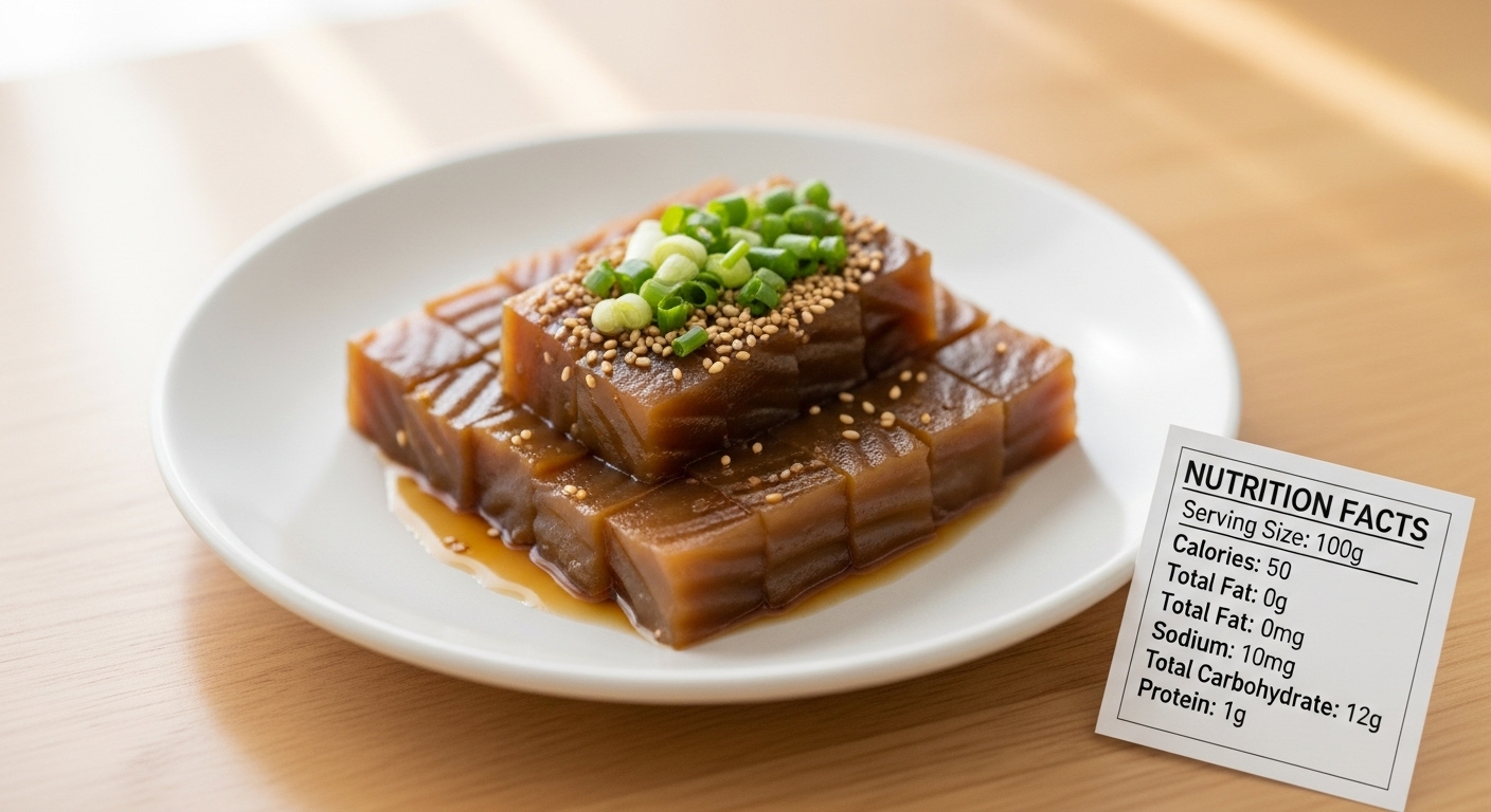 도토리묵은 100g당 약 44kcal 정도로 매우 낮은 칼로리를 자랑합니다. 일반 밥 한 공기가 약 300kcal인 것을 감안하면, 훨씬 가볍게 한 끼를 해결할 수 있는 식품입니다.