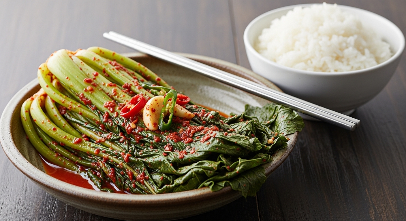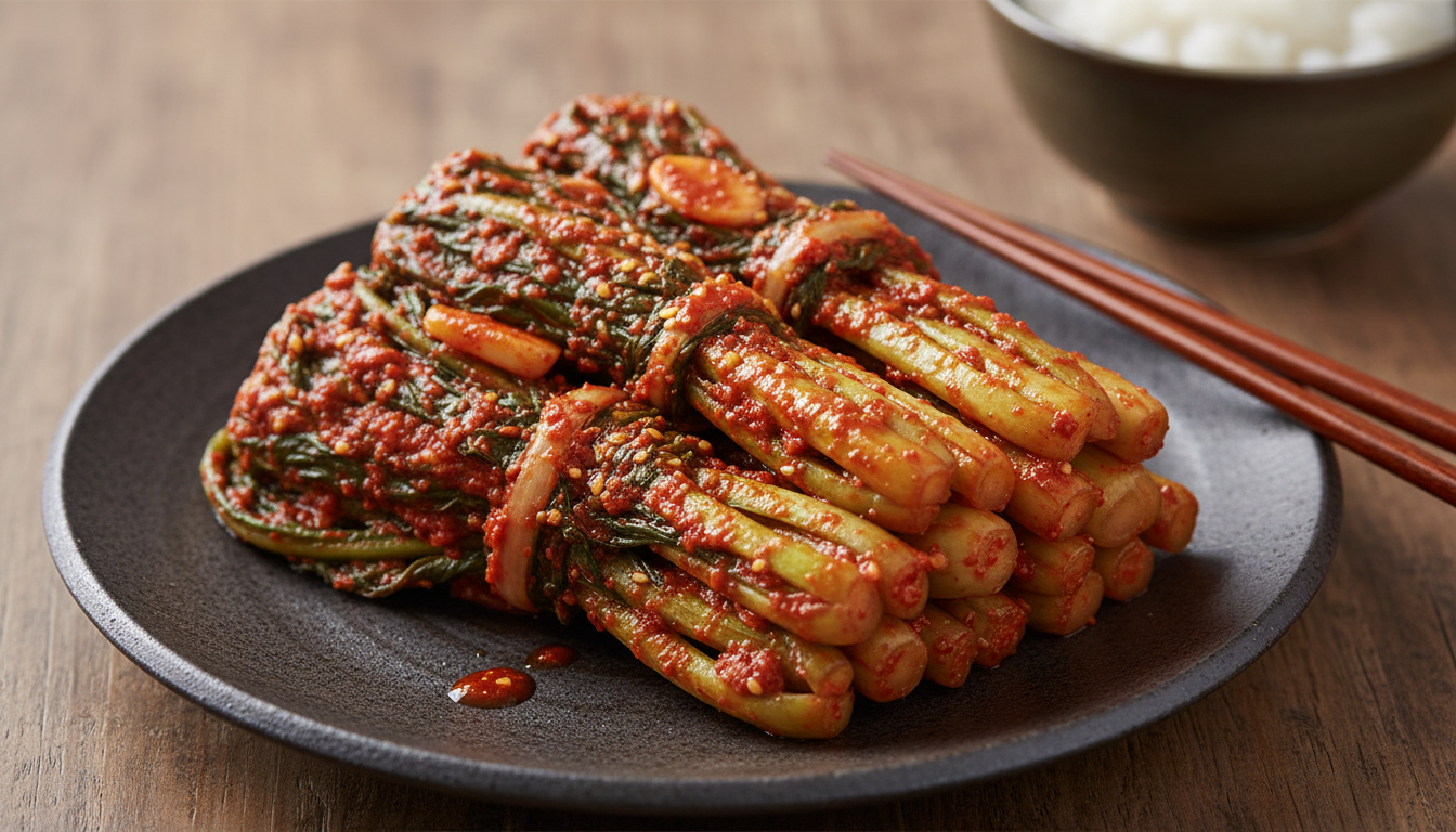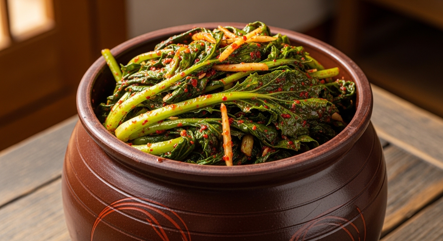 여수 돌산갓김치의 매력은 양념에 있습니다. 너무 짜거나 매운 양념은 향을 죽이니 균형이 중요합니다.