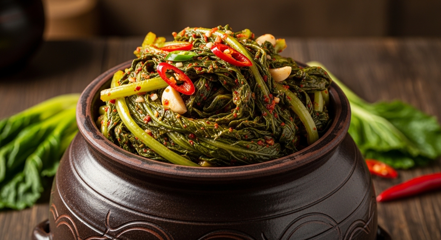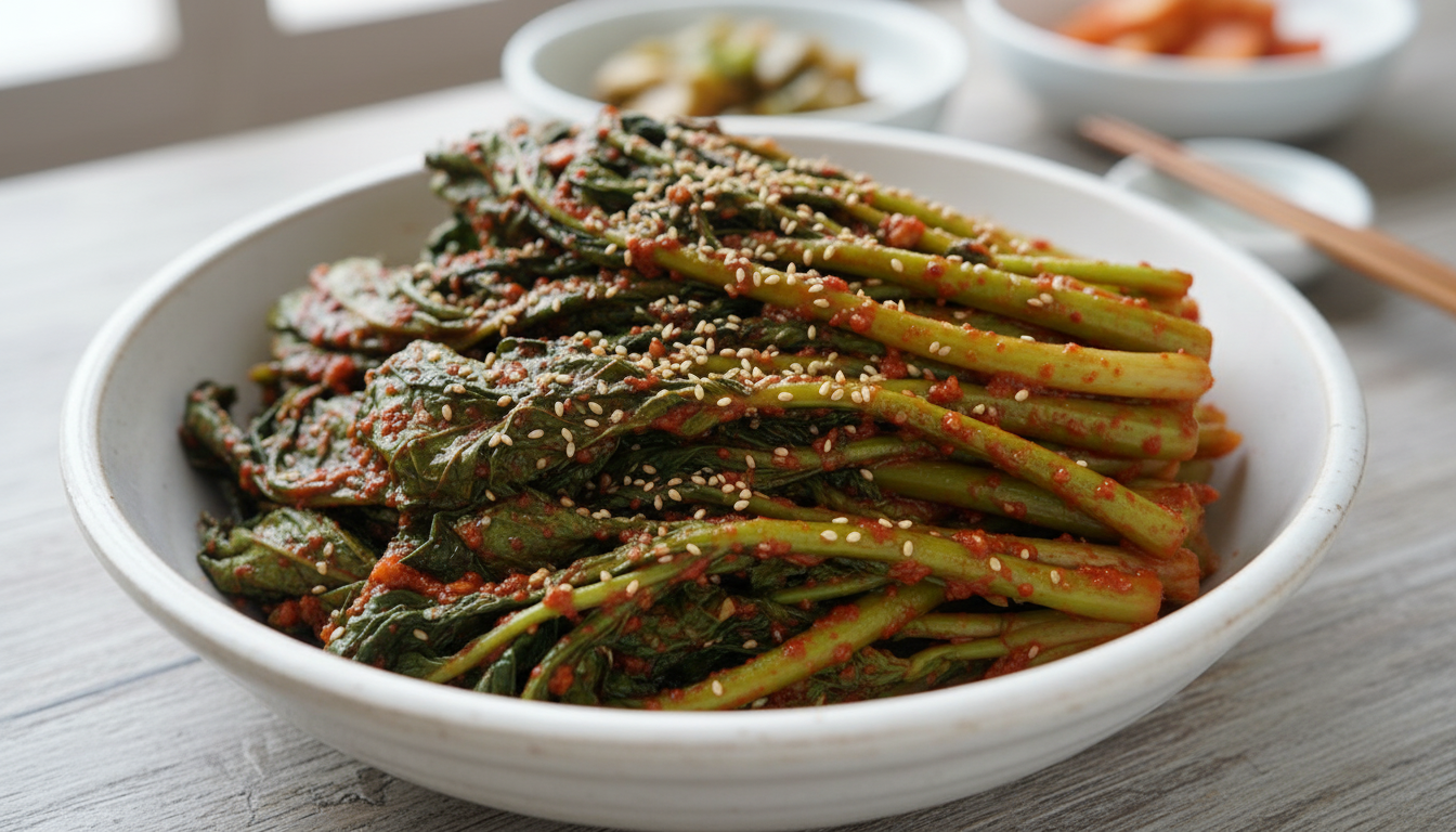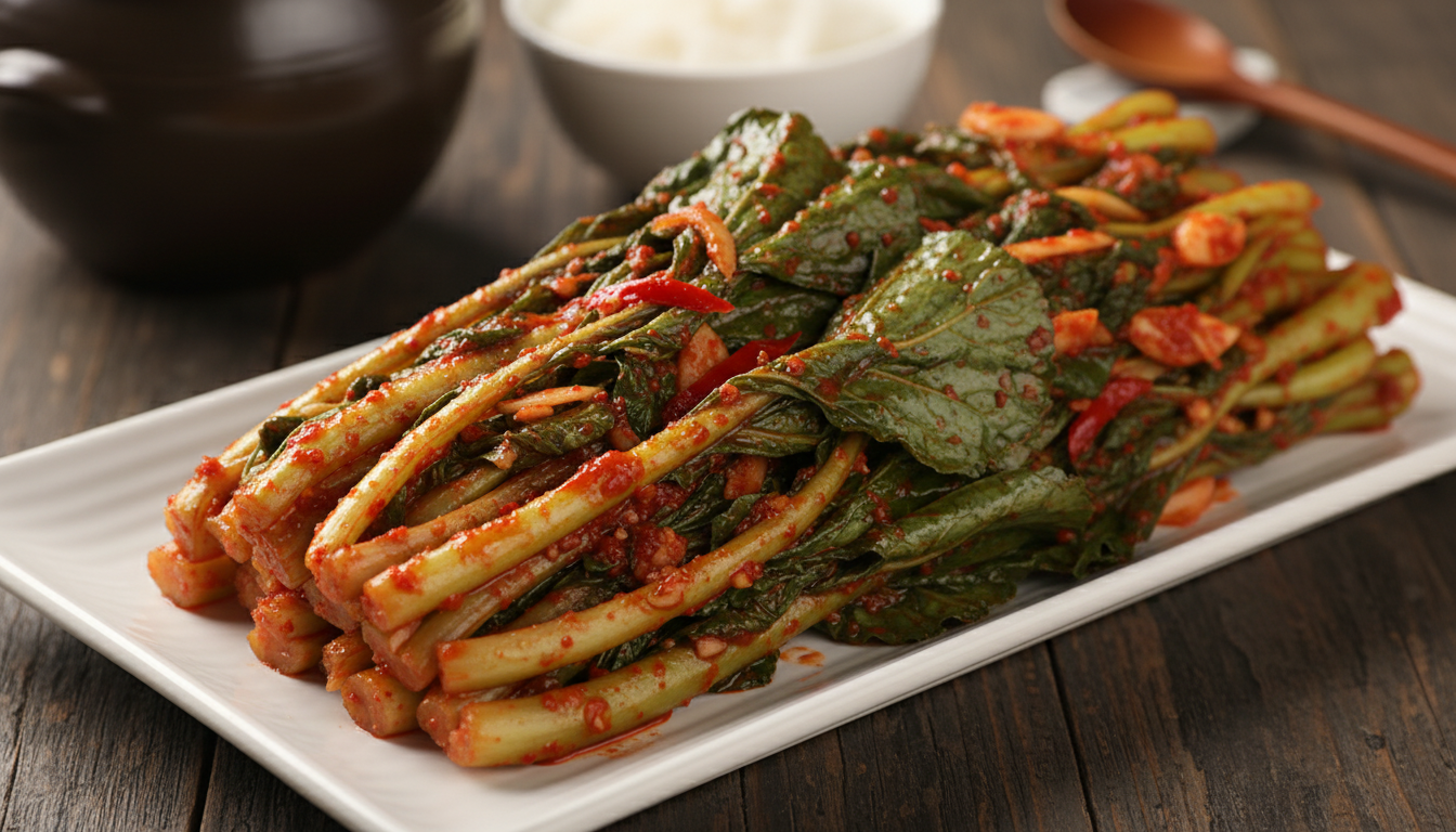 여수 돌산갓김치의 매력은 양념에 있습니다. 너무 짜거나 매운 양념은 향을 죽이니 균형이 중요합니다.