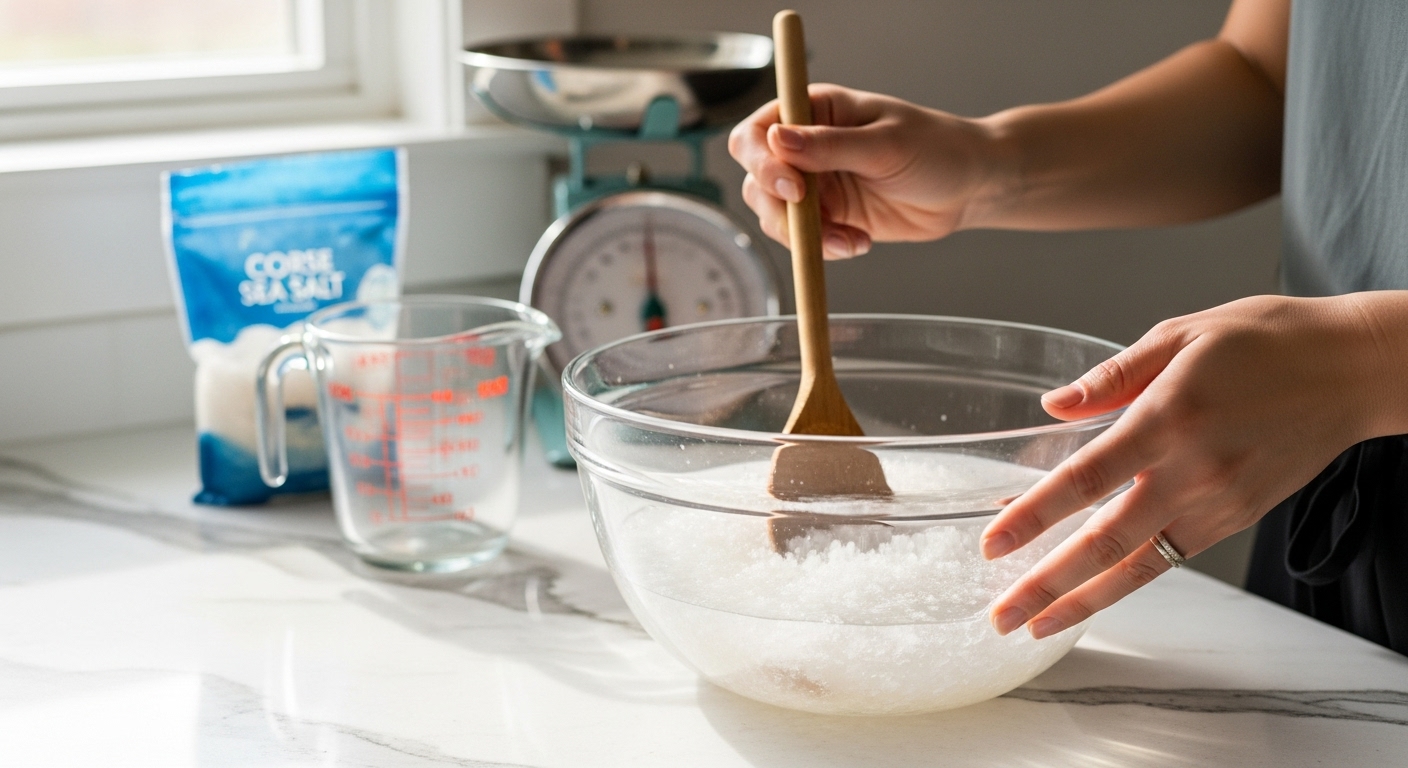 - 물에 굵은 소금을 녹여 염수를 만듭니다.