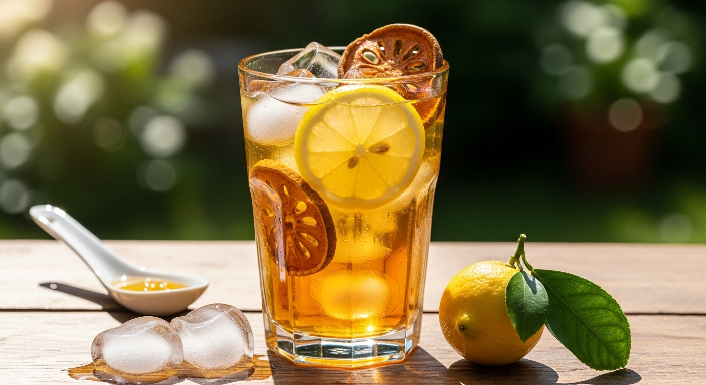 무더운 여름철에는 얼음을 넣어 시원한 모과에이드로 즐기면 갈증 해소와 피로 회복에 효과적입니다. 상큼한 레몬까지 곁들이면 그 풍미가 더욱 살아납니다.