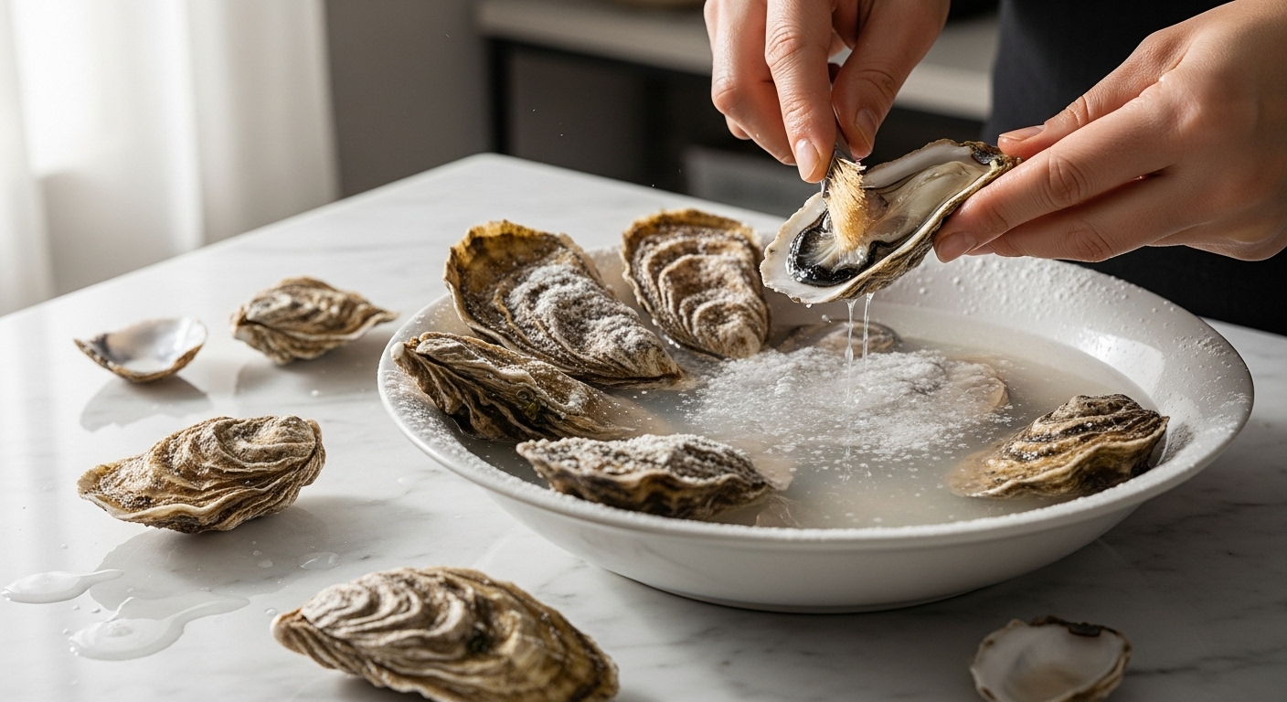 생굴을 씻는 마지막 단계에서 식초 몇 방울을 떨어뜨리면 비린내가 확 줄어들고, 레몬즙을 살짝 뿌려주면 더욱 상큼한 풍미가 살아납니다.
