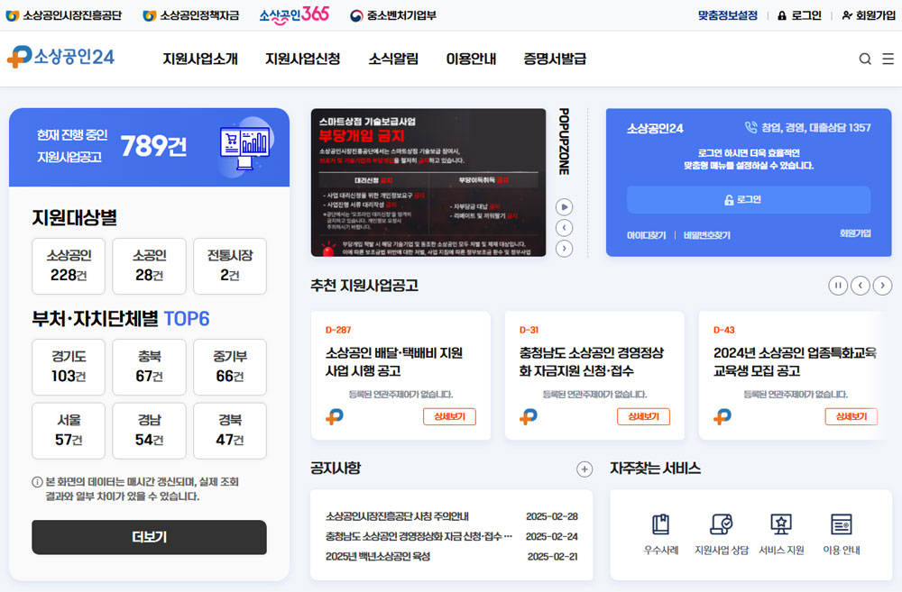 소상공인24는 소상공인과 자영업자를 위한 맞춤형 지원 혜택 정보를 한 번에 확인할 수 있는 플랫폼입니다. 소상공인24에서는 창업 및 경영, 금융 지원 외에도 정책자금 및 컨설팅까지 다양한 정보를 살펴볼 수 있습니다. 주요 서비스로는 소상공인을 위한 정책 지원 사업 조회, 창업 및 경영 컨설팅 지원, 저금리 정책자금 대출 및 지원금 신청 정보 제공 등이 있습니다.