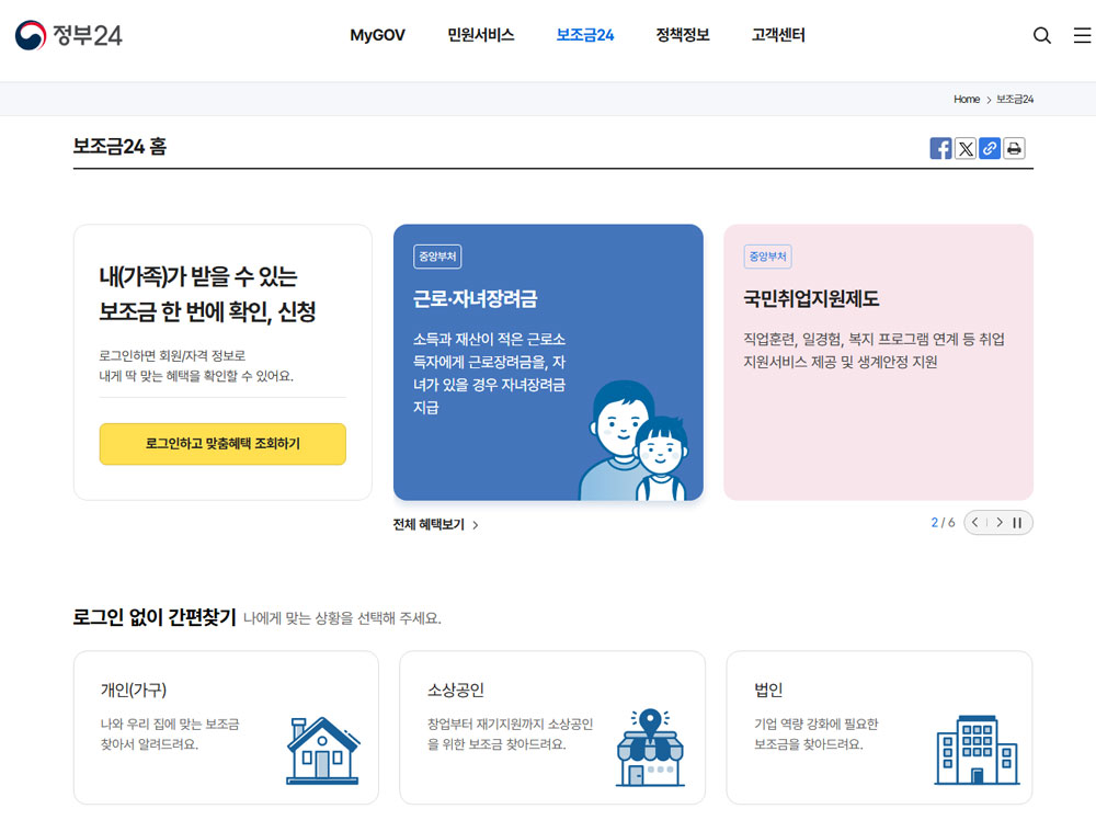 1. 정부24 > 보조금24