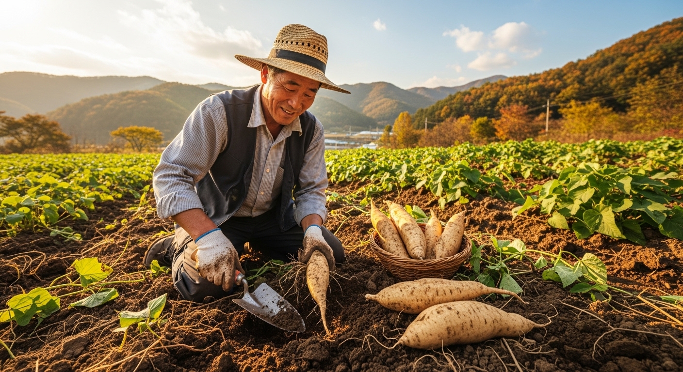 야콘은 늦가을, 첫서리가 내리는 시기부터 본격적인 수확이 시작됩니다. 보통 10월 중순에서 11월 초 사이가 알맞은 수확시기로 꼽힙니다. 특히 서리를 한두 번 맞은 야콘은 아삭하면서도 사과처럼 달콤해 바로 먹기에도 좋습니다.