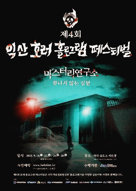 가을의 밤, 짜릿한 스릴과 신기한 기술이 어우러진 제4회 익산 호러 홀로그램 페스티벌 2025가 돌아옵니다. 이 행사는 최신 홀로그램 기술과 공포 콘텐츠가 결합된 독창적인 축제로, 공포 마니아는 물론 가족, 친구, 연인과 함께 특별한 추억을 쌓을 수 있는 시간이 준비되어 있습니다. 다음에서 익산 호러 홀로그램 페스티벌 행사 기본정보 및 주요 프로그램, 주차 셔틀버스 정보 등을 살펴보겠습니다.