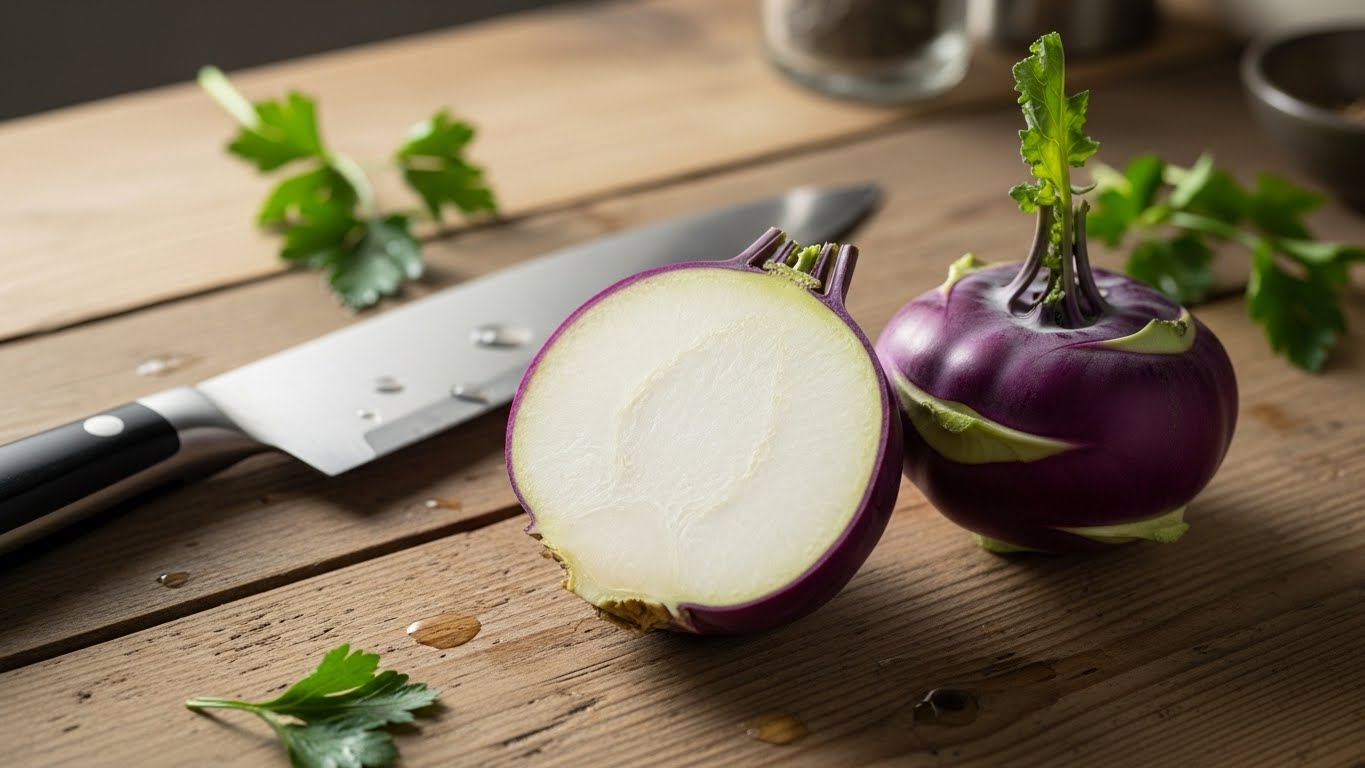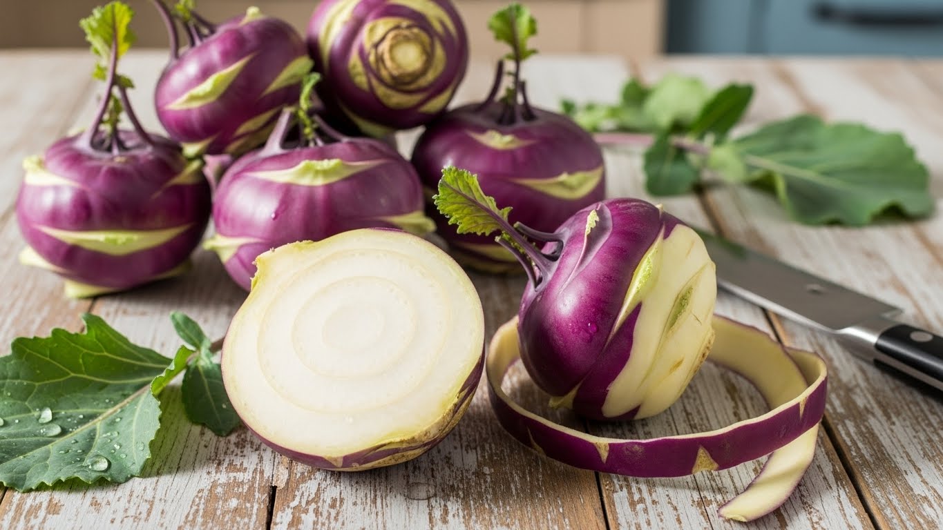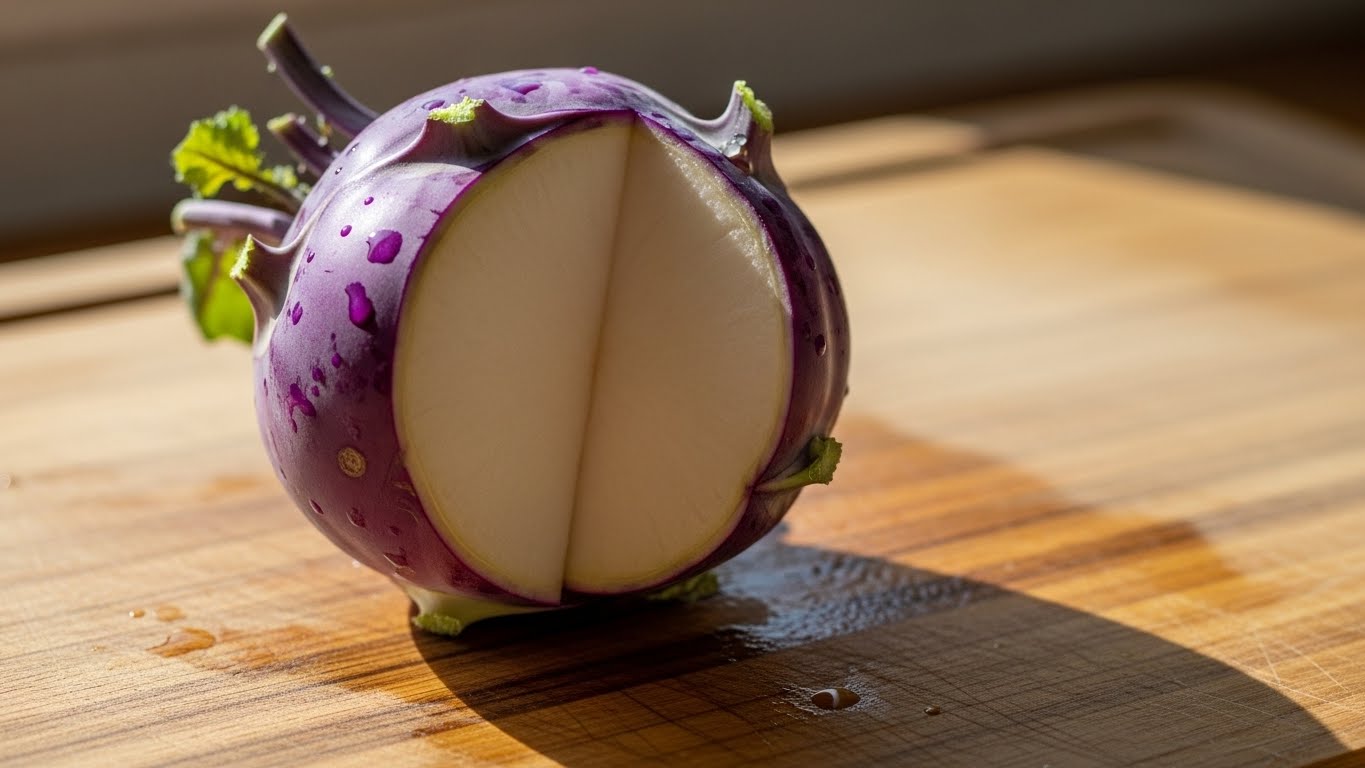 따라서 손질만 제대로 해도 이후 요리의 완성도가 달라집니다. 콜라비는 겉껍질이 보라색이며 안쪽은 무처럼 흰색입니다. 깨끗이 세척한 뒤 얇게 껍질을 제거하면 아삭한 속살이 드러납니다.