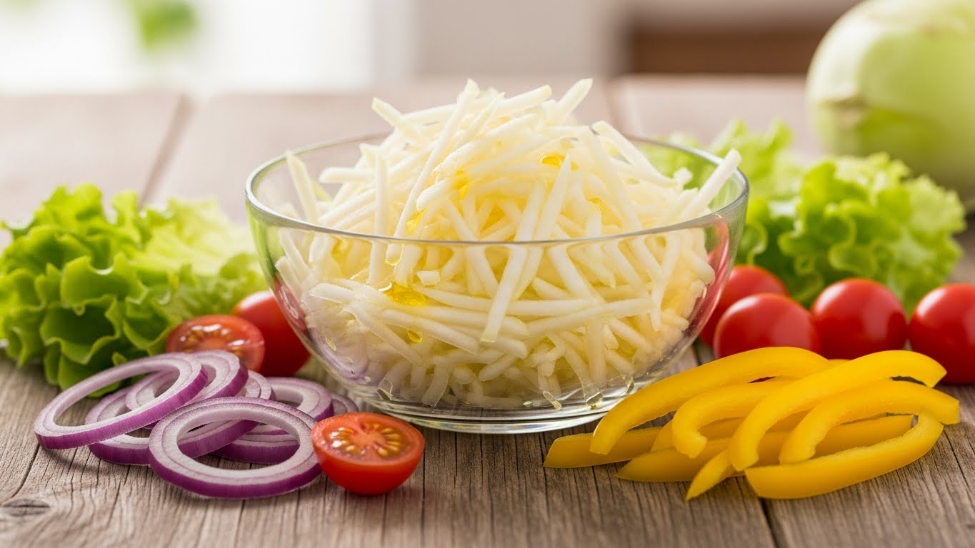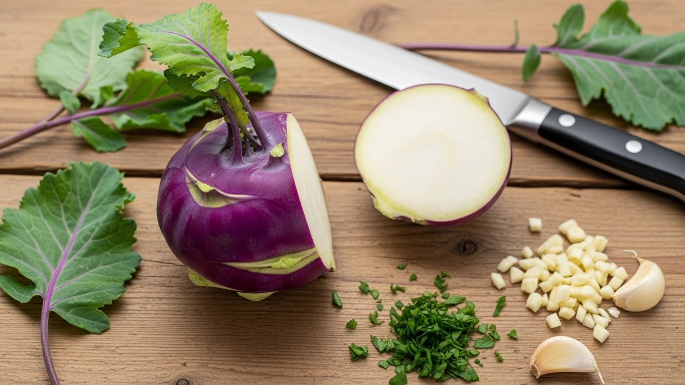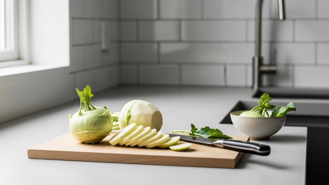 따라서 손질만 제대로 해도 이후 요리의 완성도가 달라집니다. 콜라비는 겉껍질이 보라색이며 안쪽은 무처럼 흰색입니다. 깨끗이 세척한 뒤 얇게 껍질을 제거하면 아삭한 속살이 드러납니다.