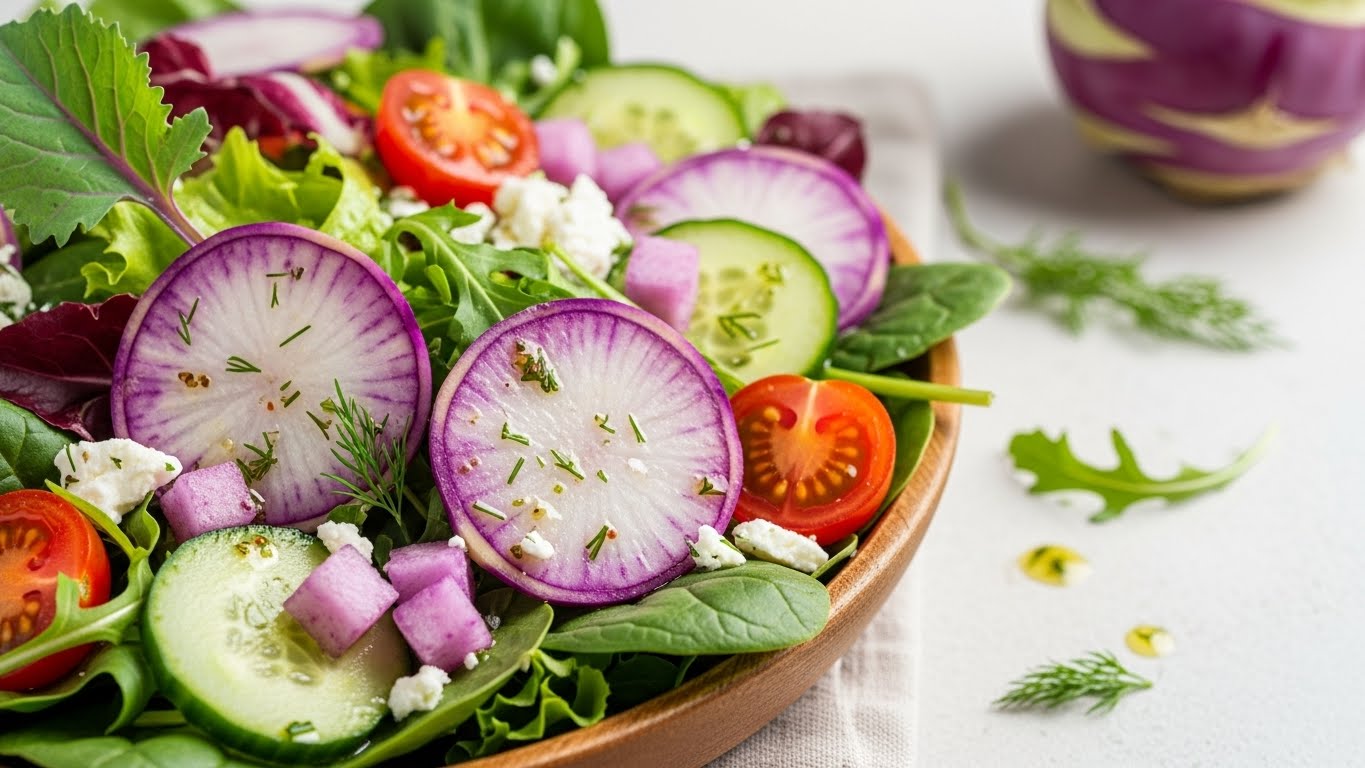 이 시기에 수확한 제철 콜라비는 아삭함과 은은한 단맛이 균형을 이뤄 정말 맛있습니다.