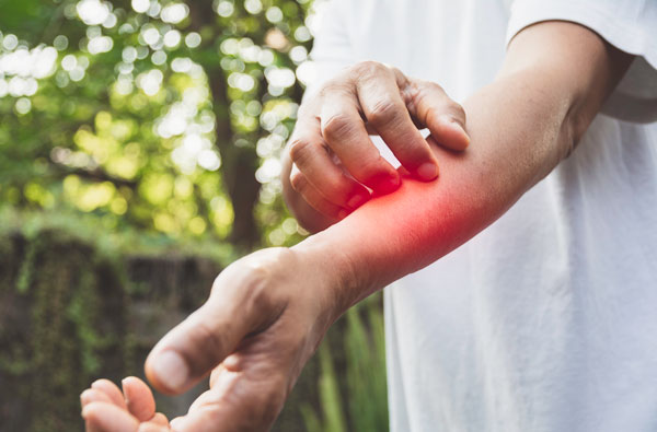 가렵다고 손으로 팔 피부를 긁는 행동은 2차 감염의 우려와 함께 색소 침착 또는 피부 손상의 원인이 되기 때문에 절대적으로 피해야 합니다. 따라서 가려움이 심할 경우에는 냉찜질 또는 약물 치료를 병행해주세요.