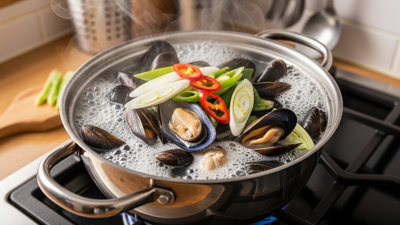 홍합탕은 복잡해 보이지만 실제로는 손질만 잘하면 누구나 금세 완성할 수 있는 메뉴입니다. 특히 겨울 제철 홍합은 감칠맛이 진하고 국물맛이 부드러워 더욱 좋습니다.
