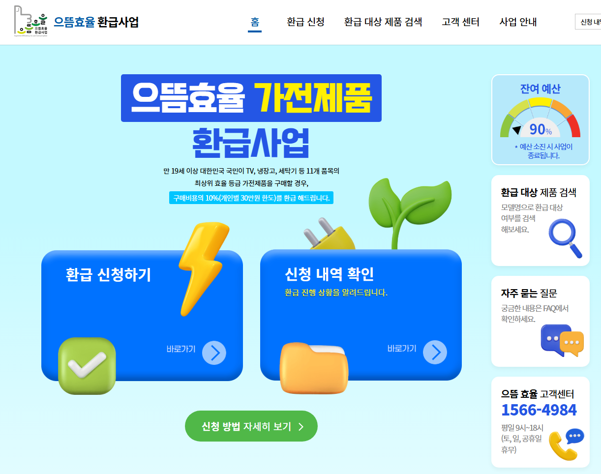 신청은 으뜸효율 가전제품 환급사업 홈페이지를 통해 온라인으로 진행됩니다.