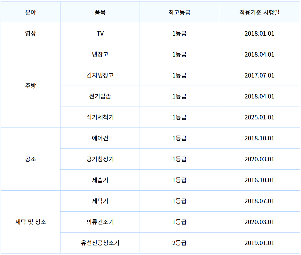 올해 가전 환급 대상품목은 생활과 밀접한 가전제품으로 구성되었습니다. 품목 중 에너지소비효율 1등급(일부 품목은 2등급) 제품이 해당됩니다.